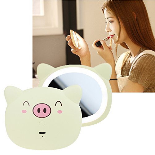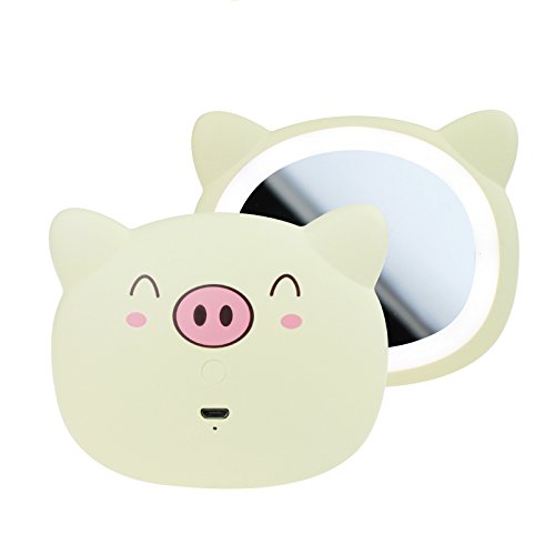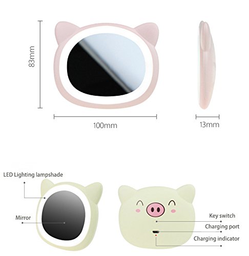 Mini LED Lighted Makeup Mirror Pink Travel Beauty Pig Mirror - Battaa C1820 ( 2018 New Design ) Daylight LED Compact Portable Pocket Vanity Cosmetic Mirror
