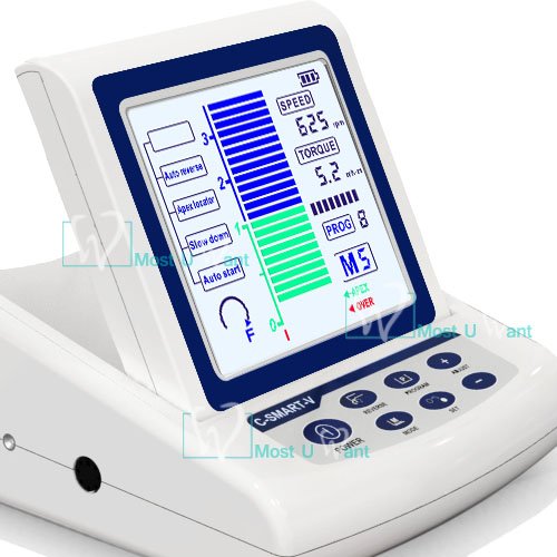 -. Feature : 2in1 Dental Endontoic Treatment & Apex Locator;Original Switzerland Electro-motor / Large Color LCD Display;Color LCD Display / Rotation Speed: 125-625rpm;Torque:0.3-5.2 N.cm/3-52mN.m / Rotation speed and torque adjustable, 9 memory settings / Auto torque reverse;Dual-frequency apex locator;Suitable for NiTi Rotary Files