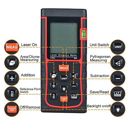 - ★ Accurate, Easy & Portable: digital laser distance measure meter range up to 60m, one key to measure and super easy to operate. Compact & Handheld design that supports one-hand control and it can be carried in your pocket conveniently.