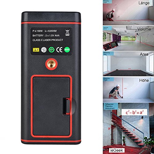- ★ Wide Application: the ieGeek Laser Distance Meter can be used in Construction and Industries, especially in large areas such as rooms, apartments, buildings, real estates, factories, warehouses, etc. You can quickly measure the size of walls, ceilings, floors, rooms, building heights, area, volume, distance, length, etc.