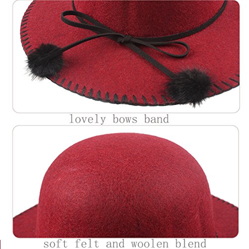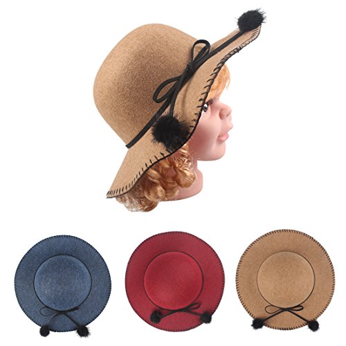 High quality: felt and soft woolen blend fabric, lightweight and comfortable Fashionable and beautiful design: wide brim, decorated with bows. Easy to match perfectly. Offering good sun protection for your kid's face in fall or winter. Great for casual wear, party, hiking or other outdoor activity.