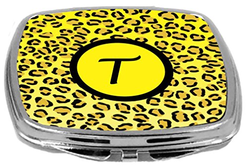 Rikki Knight Compact Mirror, Letter t Initial Yellow Leopard Print