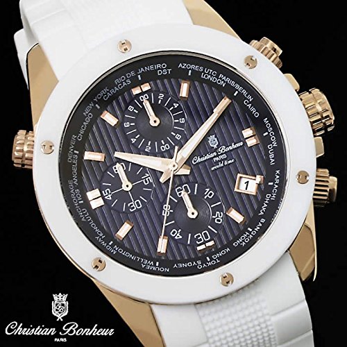 원본상품명: [クリスチャン ボヌ?ル]Christian Bonheur 腕時計 クロノグラフ ワ?ルドタイム 防水 セラミック ラバ?ベルト 流通限定 CB16401-PGBL メンズ