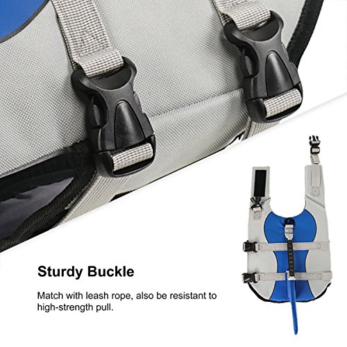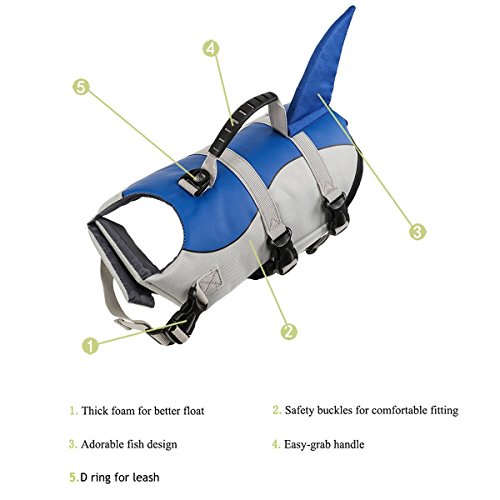 -. Feature : EASY ON/OFF :Kuorle Dog life jacket with adjustable nylon straps and quick-release buckles ensure the perfect fit.also easy to put on and off. / CONVENIENT FOR RESCUING:Handle on top for quick and easy grabbing,easy to rescue.Reflective accents and bright colors for high visibility. / UNIQUE MERMAID STYLE:Kuorle Dog life jacket is the unique mermaid style clothes,suerly make your pet become the star while swiming ,walking and other water based activities,the fish scales will catch eyes. / LET YOUR PUPPY ENJOYING SWIMMING Kuorle Dog life jacket from durable nylon,10mm thick foam inside keep your pet above the water. / SATISFACTION GUARANTEED:We are confident in the quality of our product that we offer a 30-day satisfaction guarantee! If you are unsatisfied, simply contact us to return the product for a full refund.