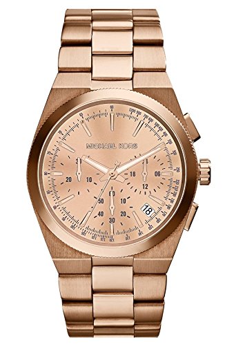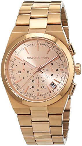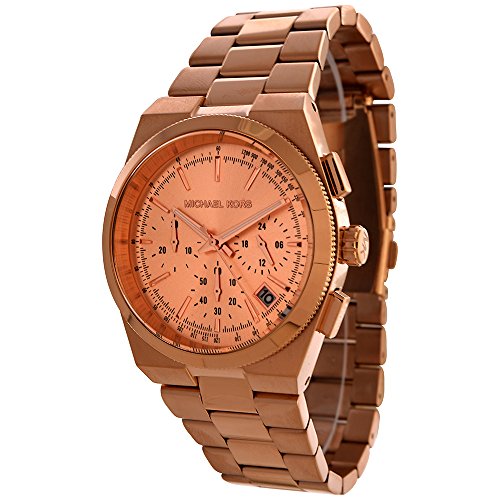 Studio : Michael Kors Publisher : Michael Kors Binding : Watch Product Description Rose gold-tone stainless steel case and bracelet. Fold-over clasp closure with push-button release. Three-hand analog display with quartz movement, three sub-dials, and a date display window. Chronograph functionality. Gold dial face includes stick indexes. Dial perimeter features split-second track and tachymeter. Top ring features coin edge detailing. Water resistant 10 ATM/100 meters. Imported. 0