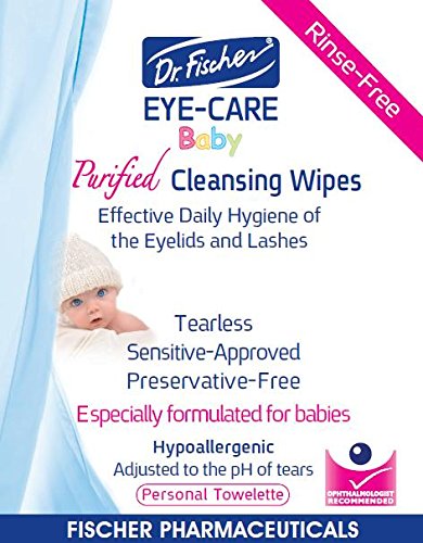 Purified, Non Irritating, Tear Free, Hypoallergenic & Sensitive Approved Baby Eyelid Wipes by Dr. Fischer – Pre-moistened, Rinse Free and Pediatrician...