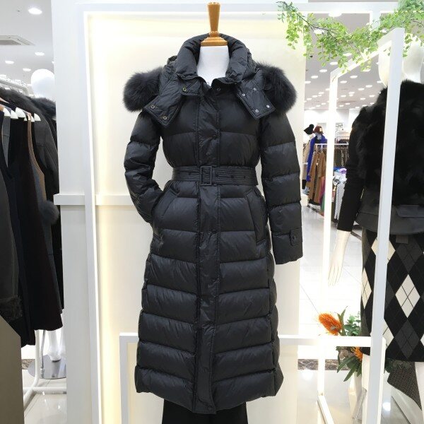 <케어라벨에 표기된 사이즈와 실제사이즈는 다를 수 있습니다>충분한 내부 충전재와 고급스러운 폭스퍼의 프리미엄 롱패딩입니다. 트렌디한 유광으로 마무리한 디자인이 굉장히 세련됨이 돋보임과 동시에 보온성과 편안함까지 제공합니다.큼지막한 후드의 풍성한 천연 폭스퍼로 완성도를 높인 벨트 타입의 프리미엄 패딩입니다.