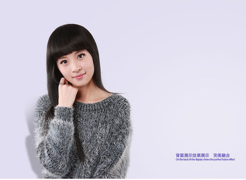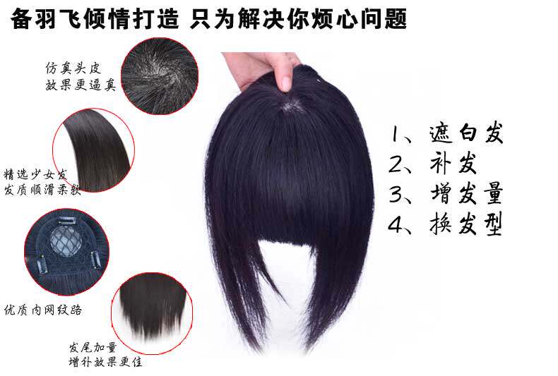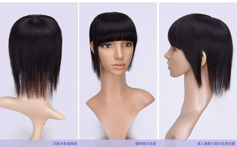 真发手钩机制发块斜齐刘海遮白发 头顶稀少补发直发片