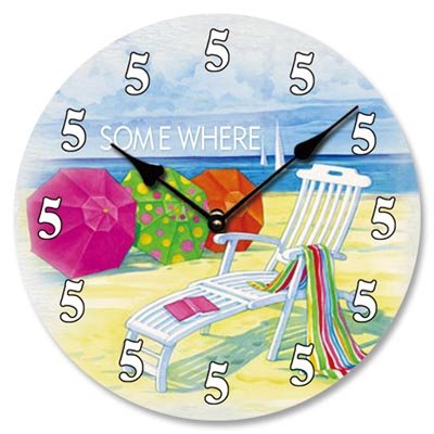 Summer Beach 5 Oclock Somewhere Wall Clock Wood & Canvas 7-3/4