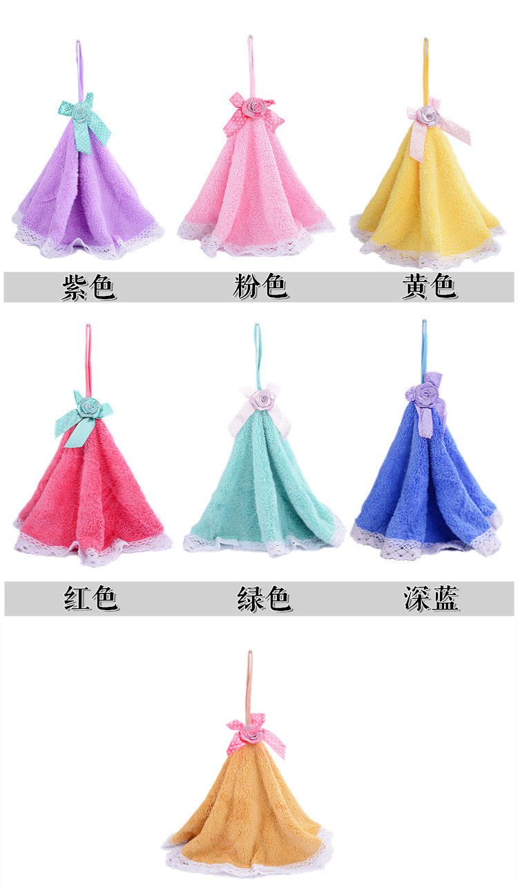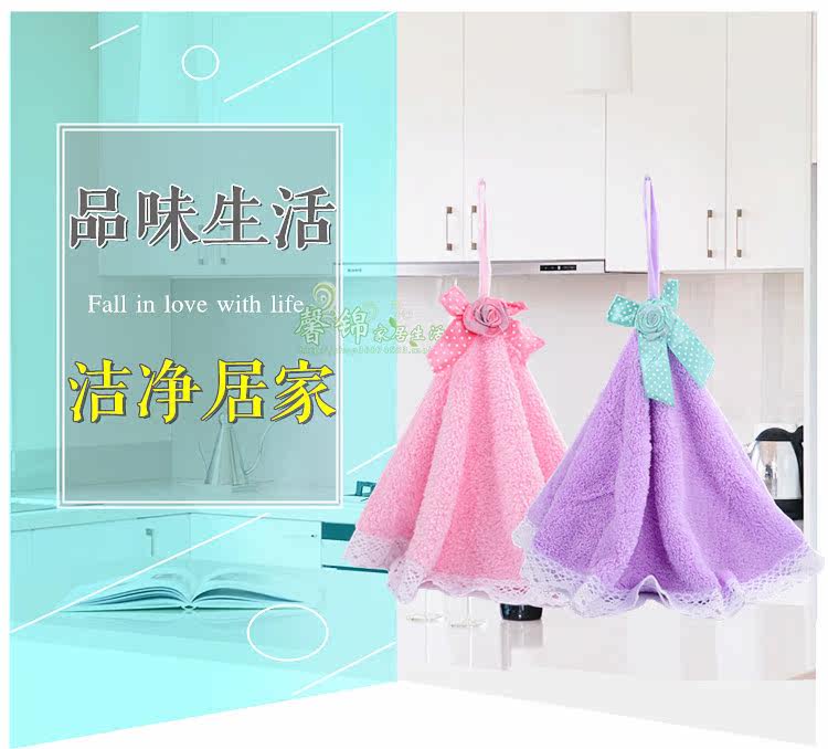 珊瑚绒擦手巾挂式强吸水蕾丝花边搽手巾柔软加厚厨房抹布擦碗布