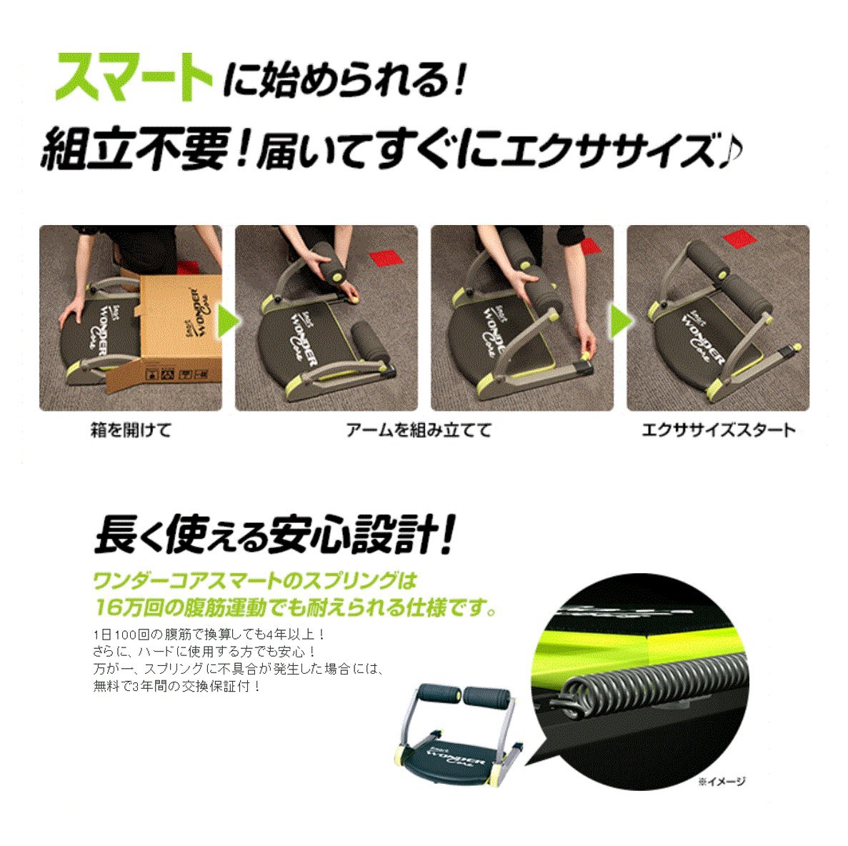 本体に内蔵されたスプリングが運動をサポートしてくれるので倒れるだけで腹筋ができます。