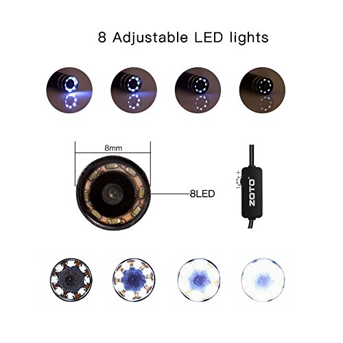 ✔ADJUSTABLE HIGH RESOLUTION: The resolution can be adjust to HD 640*480, 1280*720; 8.0mm camera head diameter, 2.0 megapixel with 8 built-in adjustable bright LED lights. It can take pictures and videos, and save in the mobile phone or computer. Perfectly be a great helper in your inspection work and adventure explore journey.