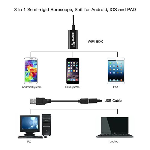 WiFi Endoscope, ZOTO Wireless Borescope Semi-rigid Inspection Camera 8 LEDs 2.0 Megapixels HD Waterproof Snake Camera for Android,IOS Smartphone, iPhone, Samsung, Tablet PC and Laptop (9.84ft)