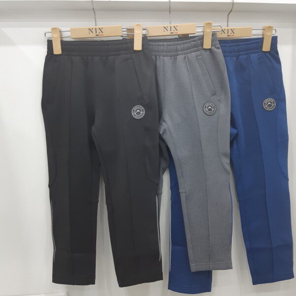 폴리스판원단에 곡선절개와 하단의 삥배색 포인트앞중심턱처리로활동성을 강조한 팬츠