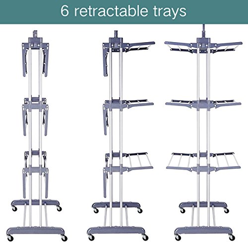 🌟STURDY AND DURABLE: The Rolling drying rack is made of premium iron pipe(surface electroplating treatment)+plastic. As a result, it has a good feature of durability.
