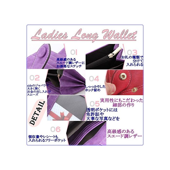 원본상품명: Micopuella 全9色 カドがたくさん入る 長財布 レディス 大容量 カド 入れ ステッチ レザ ロング ウォレット スエド 革