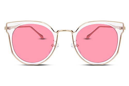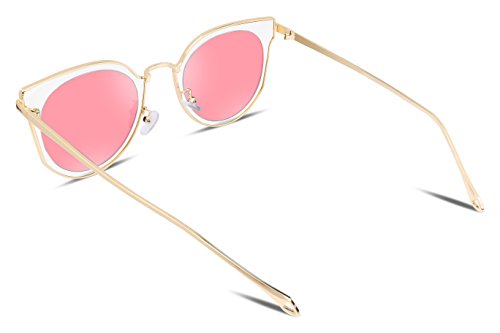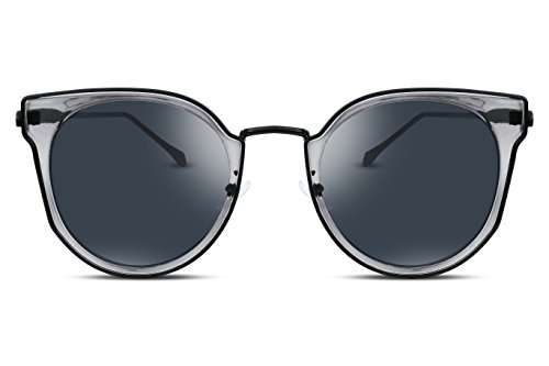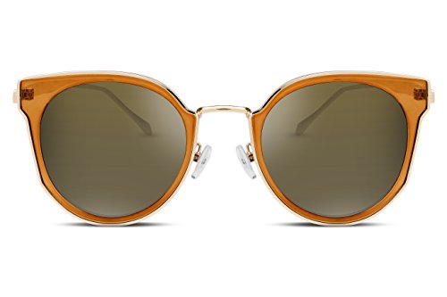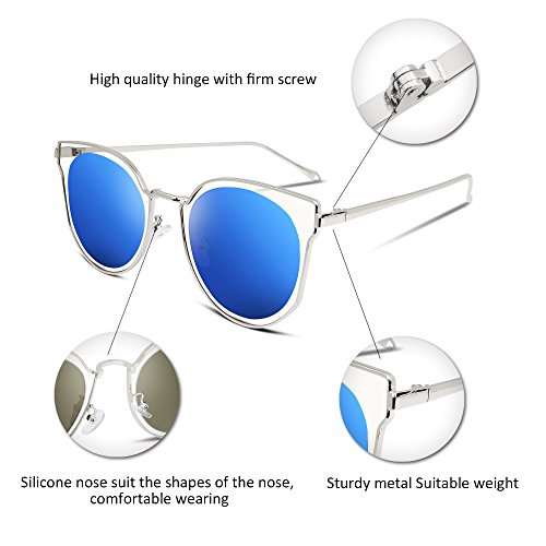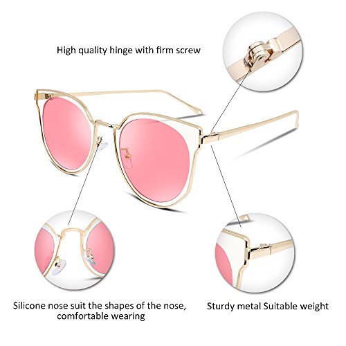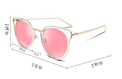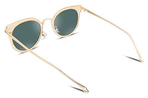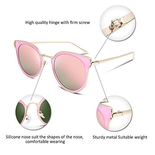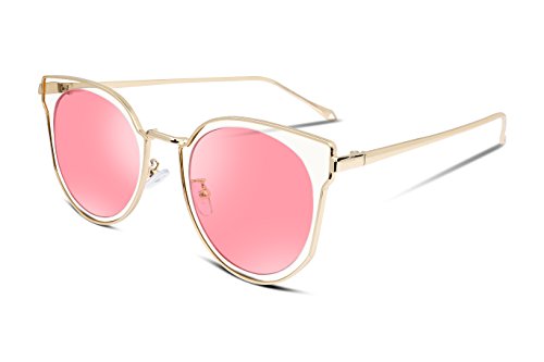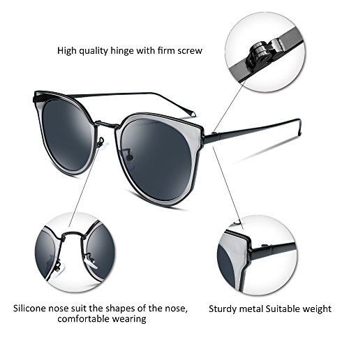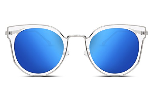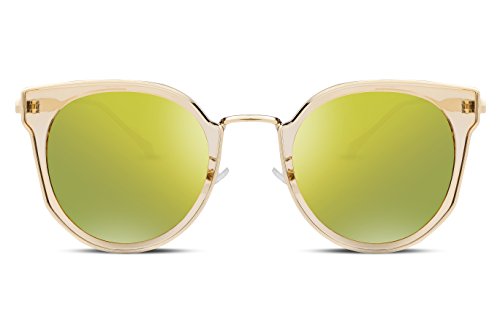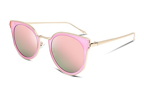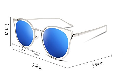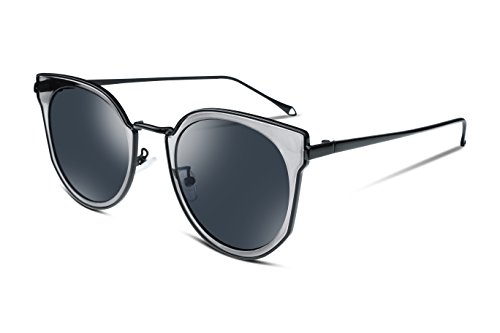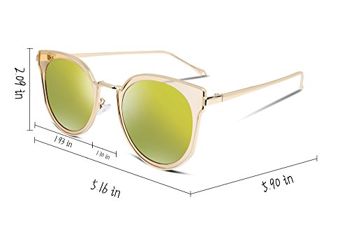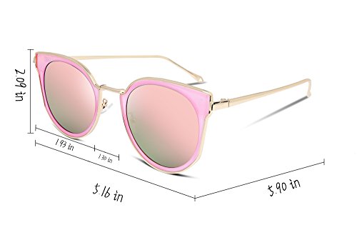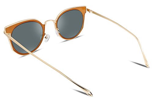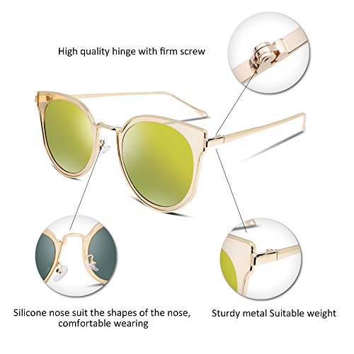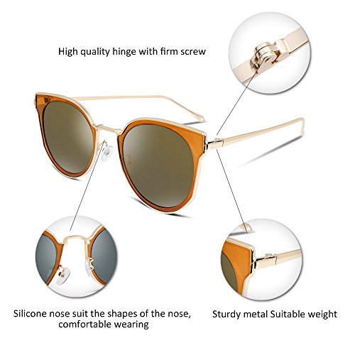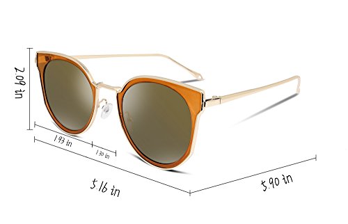 FEISEDY Fashion Women Cateye Sunglasses Round Reflective Polypropylene Lens Metal Frame B2256