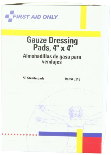 -. Binding : Health and Beauty -. Brand : First Aid Only -. EAN : 0092265102131 -. Label : First Aid Only -. Manufacturer : First Aid Only -. Model : J213 -. MPN : J213 -. NumberOfItems : 2 -. PackageQuantity : 2 -. PartNumber : J213 -. ProductGroup : BISS -. ProductTypeName : HEALTH_PERSONAL_CARE -. Publisher : First Aid Only -. Studio : First Aid Only -. Title : First Aid Only 4" X 4" Gauze Dressing Pad, 25 2-packs, 50-Count Boxes (Pack of 2) -. UPC : 092265102131