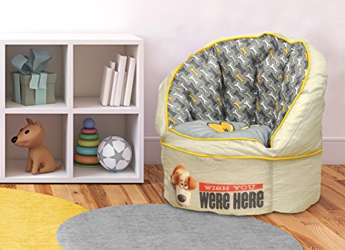 Studio : Idea Nuova - LA Publisher : Idea Nuova - LA Binding : Toy Product Description Brighten your child's room with the Universal secret life of pets toddler bean bag chair. With its soft bean filling, the comfy seat is ideal for reading, playing games, and relaxing. It is lightweight - easy to move from room to room. The nylon fabrication is spot clean only. Ideal for 2-6 years of age. Dimensions: 22" H x 22" W x 18"L. 0