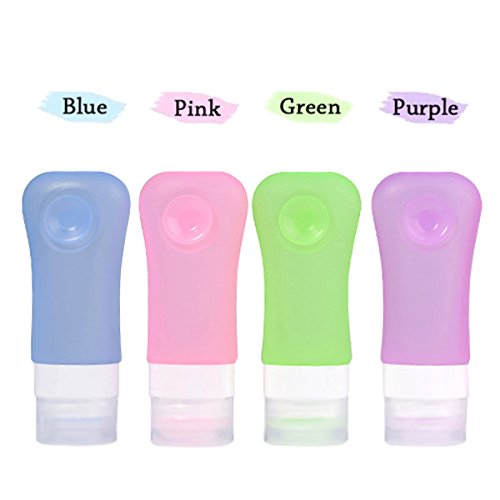 LoiStu Portable Travel Sucker Containers Soft Silicone Bottles Set Certificated by FDA, Blue/Pink/Green/ /Purple, 2oz , Set of 4