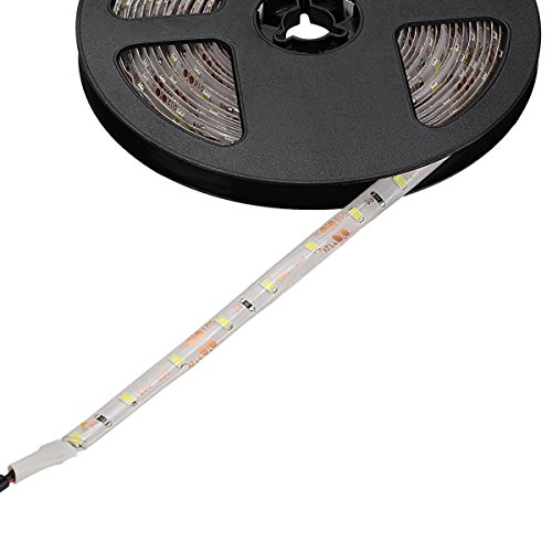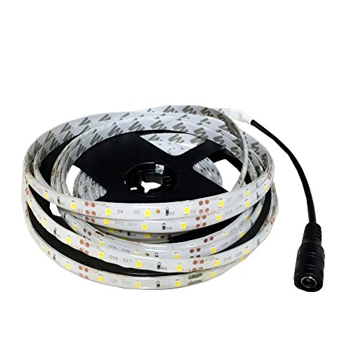WenTop Waterproof Led Strip Lights SMD 3528 16.4 Ft (5M) 300leds 60leds/m White Flexible Tape Lighting Tape Lights in DC Jack for Boats, Bathroom, Mirror, Ceiling and Outdoor - No Power Supply