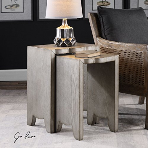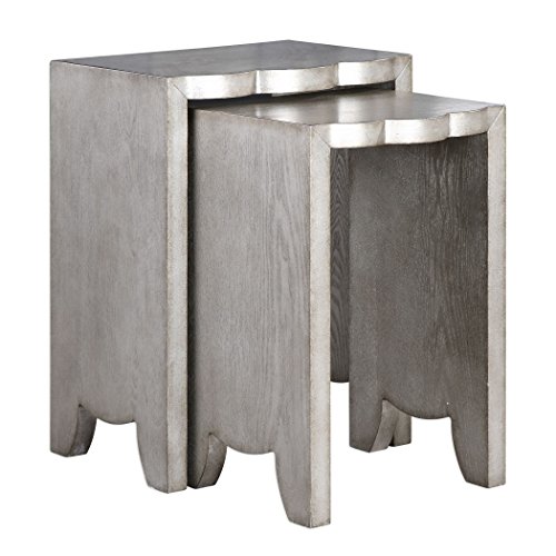 -. Brand : My Swanky Home -. Color : Silver -. EAN : 0707430435685 -. Feature : Color/Finish: Featuring Carved Scalloped Tops, These Nesting Tables Make A Great Multi-leveled Side Table. Finished In Burnished Silver Revealing Natural Ash Veneer Wood Grain. / Size: 24'' L X 18'' W X 14'' Deep • Weight: 41.8 lbs. / Material: Premium Hardwood Composite,Veneer / Heirloom Quality - Expertly Handcrafted and Hand Finished • Each piece may have subtle differences / Featuring Carved Scalloped Tops, These Nesting Tables Make Great Multi-leveled Side Tables. Finished In Burnished Silver Revealing Natural Ash Veneer Wood Grain. Sizes: Sm-14x22x14, Lg-18x24x14 -. Label : My Swanky Home -. Manufacturer : My Swanky Home -. ProductGroup : Furniture -. ProductTypeName : HOME_FURNITURE_AND_DECOR -. Publisher : My Swanky Home -. Studio : My Swanky Home -. Title : Scalloped Silver Rustic Wood Nesting Table Set | Curved Gray Pair -. UPC : 707430435685