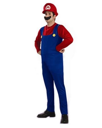 빨강 슈퍼 어른용 코스프레 5점 세트≪의상+모자+수염2종+장갑≫코스튬