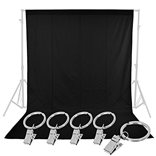 Neewer Photo Studio 6 x 9FT / 1.8 x 2.8M Pure Muslin Collapsible Backdrop with 5-Pack Spring Clamps for Photography,Video and Television(Black)