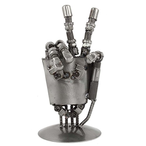 NOVICA Metallic Eco-Friendly Metal Auto Parts Sculpture, 'Rustic Robot Hand'