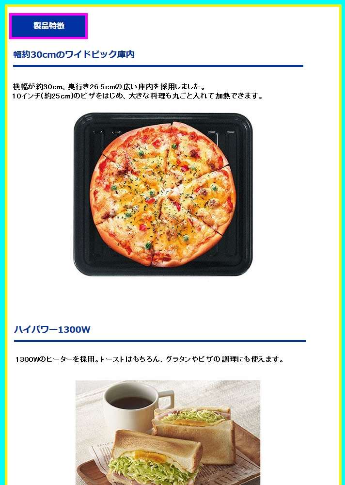 ●ハイパワー1300W。1300Wのヒーターを採用。トーストはもちろん、グラタンやピザの調理にも使えます