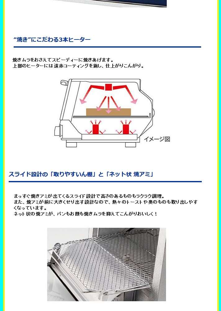 ●“焼き”にこだわる3本ヒーター。焼きムラをおさえてスピーディーに焼きあげます