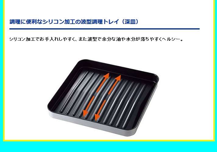 ●調理に便利なシリコン加工の波型調理トレイ(深皿)シリコン加工でお手入れしやすく、また波型で余分な油や水分が落ちやすくヘルシー