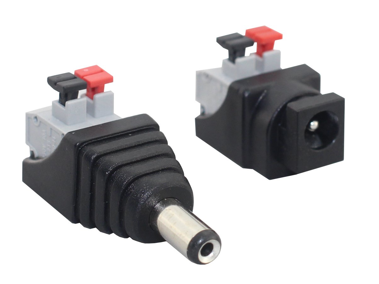 · DC plug / jack size - inner diameter: 2.1 mm / outer diameter: 5.5 mm · Screw stop unnecessary, One touch push type · Male / female Each one is delivered in pairs of two.