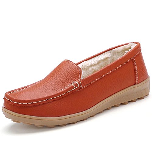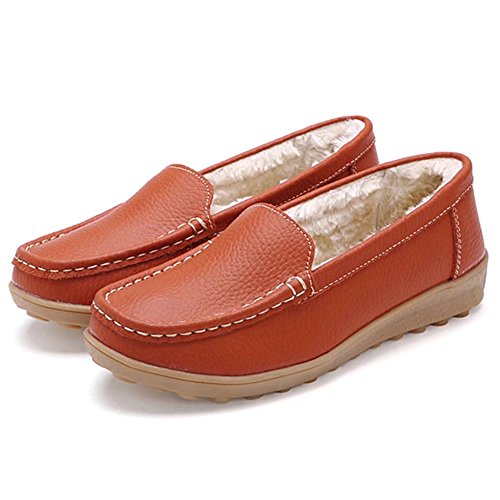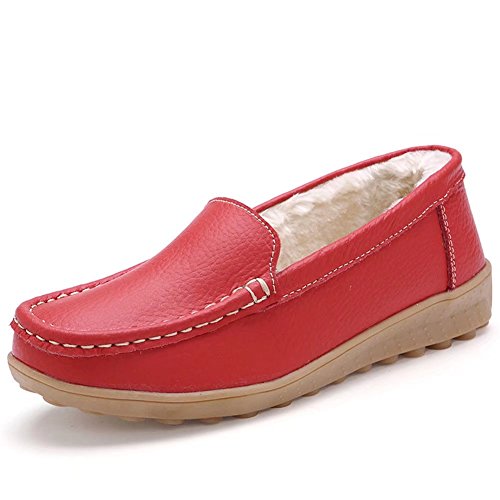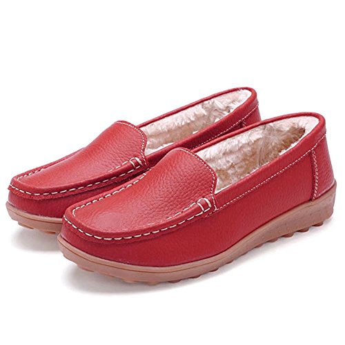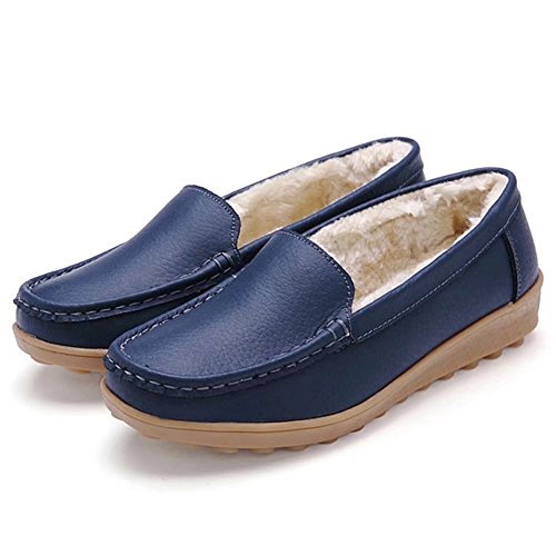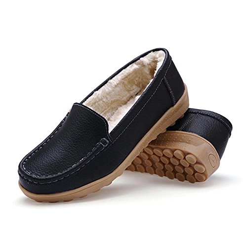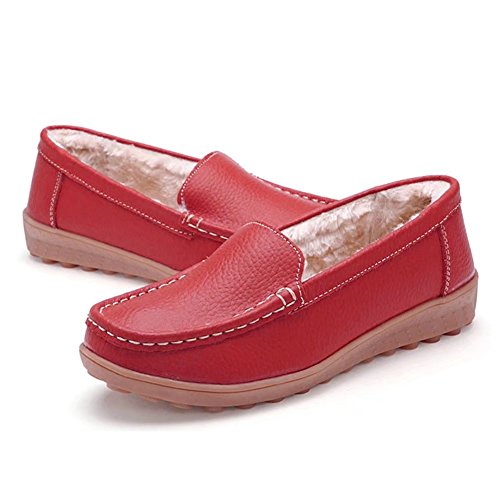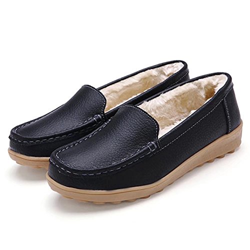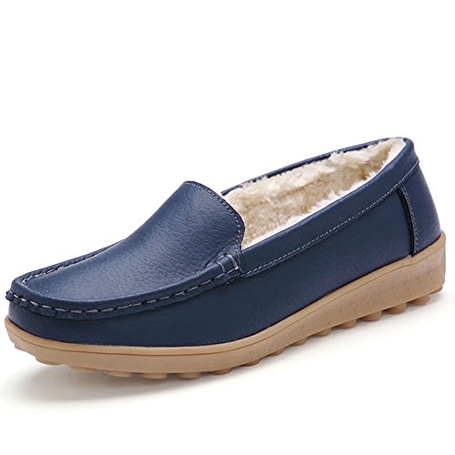CIOR Women Leather Casual Loafer Shoes Moccasin Flat Slip-on Slippers