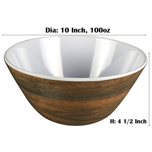Big Salad Mixing Bowl - Melamine 10 Inch Large Wood Grain Camping Soup Bowl,100 Ounce