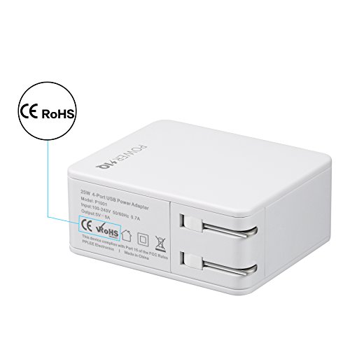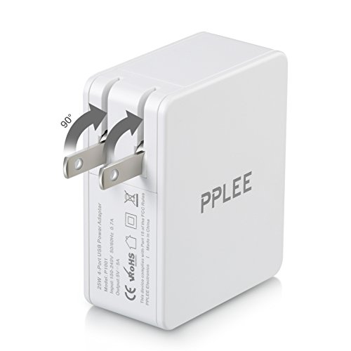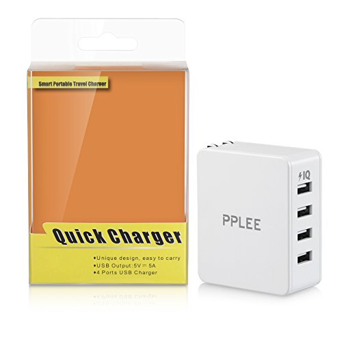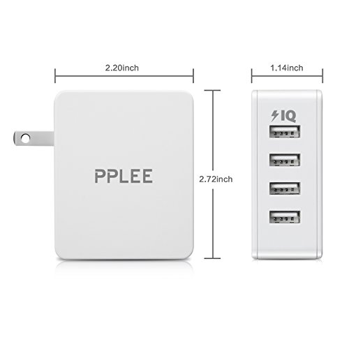 PPLEE 4 Port Charger High Speed Portable Travel USB Wall Charger Adapter White