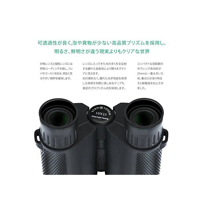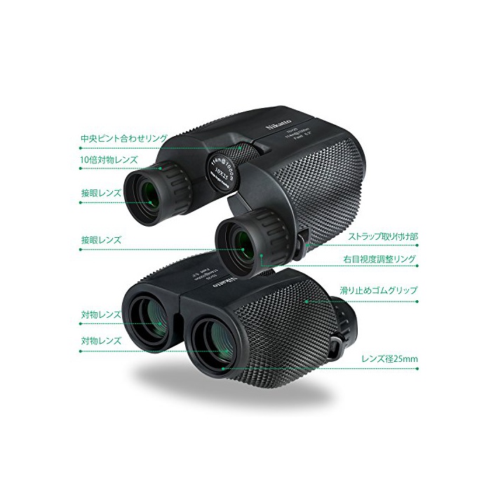 【눈(째)에 저스트 피트 렌즈경】렌즈경25mm이하라는 것은 컴팩트한 쌍안경입니다.대물 렌즈 유효계가 클 정도로(수록) 쌍안경에 들어 가는 빛의 분량은 많이 지고, 집광힘이 있고, 밝기로 해상력이 향상 하고, 시야도 밝게 됩니다.Nikatto의 쌍안경은 콤팩트 쌍안경에 렌즈 유효경이 제일 큰 때문에,제일집 광힘이 있고, 밝습니다.압도적인 박력과 현장감을 즐기는 것 를 할 수 있습니다.