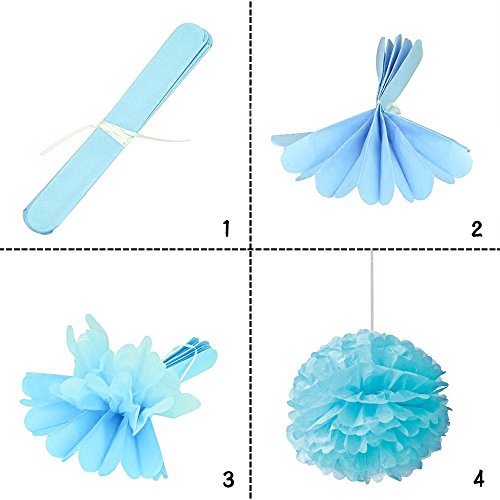 Easy to DIY paper pom poms ---- There be 12 pcs flower fold and 15 pieces tassels when you received. It cost about 15 minutes to unfold ones.Please arrange enough time to make it before party.