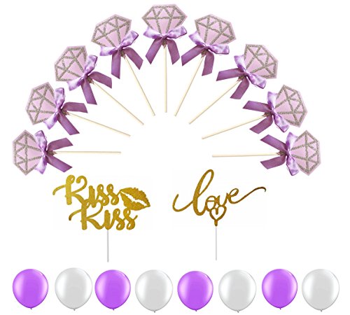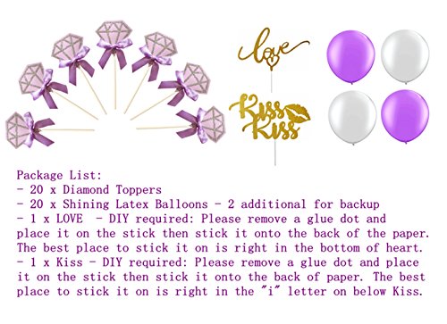 - Features 3 styles of decorations: 20 pcs Diamond Cupcake Toppers, 1 pcs “LOVE” Kits Stick, 1 pcs “KISS” Kits Stick, 20 pcs beautiful Pearlescent Balloons