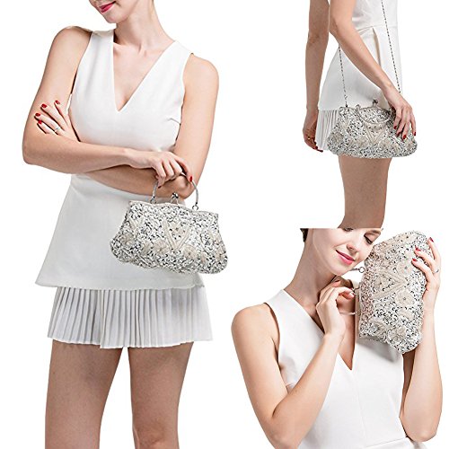 Description: Soft purse features a cascading faux pearl bead pattern. A very fashionable addition to draw eyes at your next cocktail party or classy event. This bag can follow you around wherever you go and its roomy interior is enough for all of your essentials on a night out. A removable chain allows you to transition this clutch between a dangling shoulder bag and a dazzling handbag. Multipurpose feature makes this purse an ideal one for party, wedding, casual dinner, date, etc. It is also a great gift for girl, girl friend, female friend, and mother.