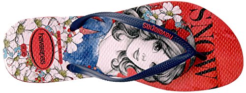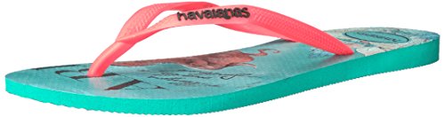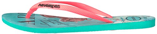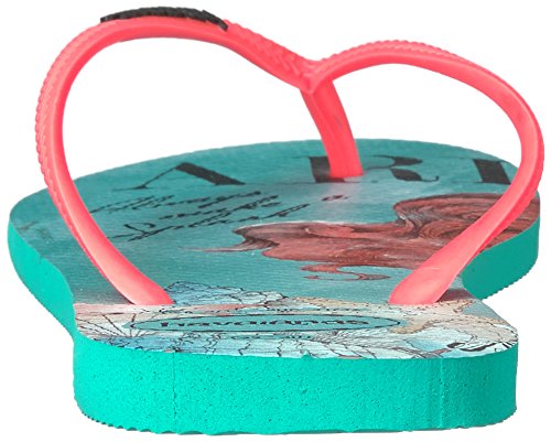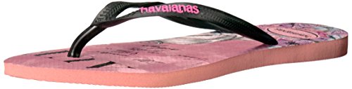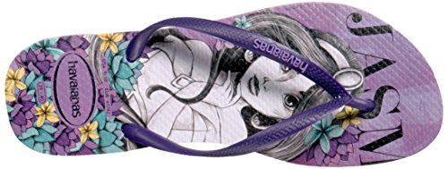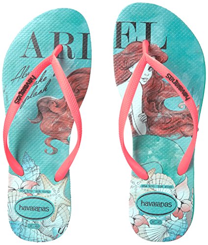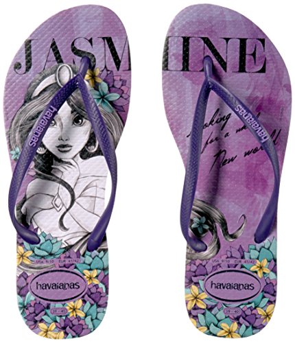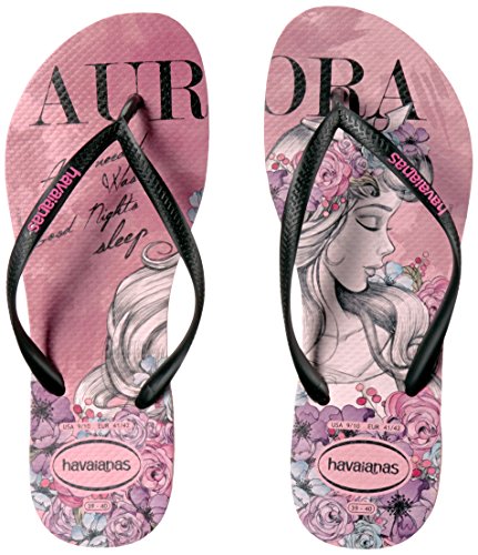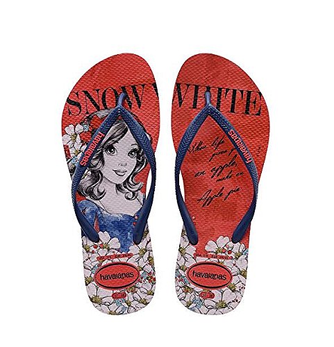 Studio : Havaianas Publisher : Havaianas Binding : Apparel Product Description Your favorite disney princesses are camera-ready on the slim princesas flip flop. inspired by the fashion magazine cover pose, this comfy sandal features ariel, aurora, snow white, or jasmine. a contrast havaianas logo on slim straps completes the look. 0