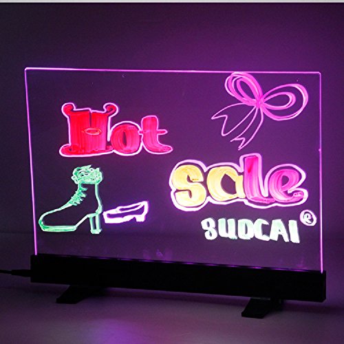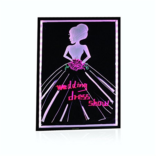 -. Feature : 1. Colored LED Light: 7 Colors LED Writing Sparkle Board Sign, It Lights up Your Messages like Neon or Sign. / 2. Fit For: Restaurant Menu Boards, Daily Specials, Special Events, Promotions, Discount Sales, New Item Releases or P.R.Ice Lists, Even Parties and So On. / 3. The Latest LED Technology: 7 Colors, Flashing or Smooth Cycle Mode, Comes with the Remote Control, Helps You Easily Choose Different Color or Speeds to Shine Your Messages. / 4. Good Quality: Owned CE and RoHS Certificates. You can Trust Us and Welcome to Purchase. / 5. Simple & Easy to Use: Use Right Out of the Box; Simply plug in, Then Write On and Wipe off , Hanging Horizontally or Vertically. It's Easy To Carry Around and Set Up Due to Light Weight.