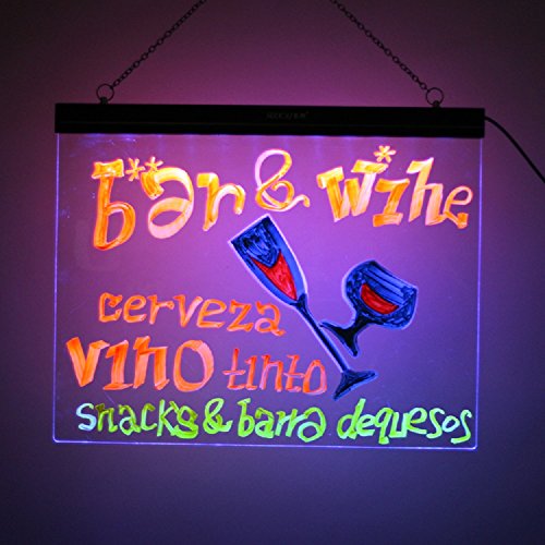 -. Title : Smonet Flashing Illuminated Erasable Neon LED Message Menu Sign Clear Glass Writing Board, 7 Colors of RGB 28 Flashing Mode
