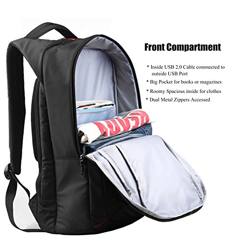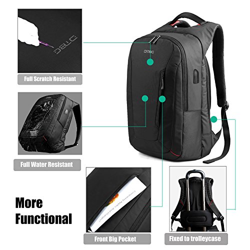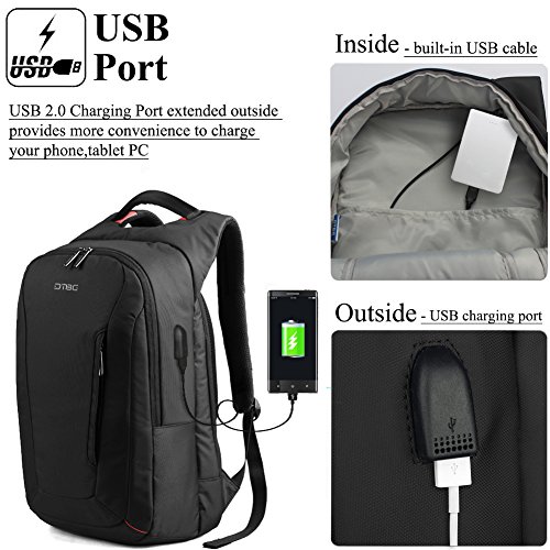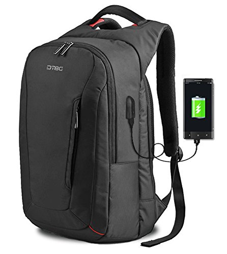 DTBG 15.6 Inch Laptop Backpack With USB Charging Port Laptop Bag Nylon Rucksack Business Knapsack Travel Daypack Water Resistant Backpack For Men / Women - Black