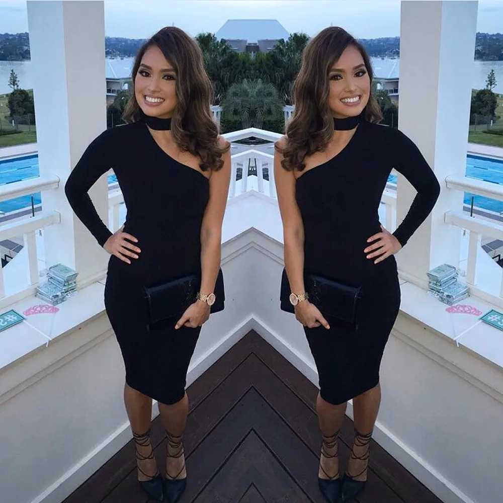 Red Black White 2016 Autumn Dresses One Shoulder Halter Long Sleeve Women Pencil Dress Sexy Club Bodycon Party Dresses