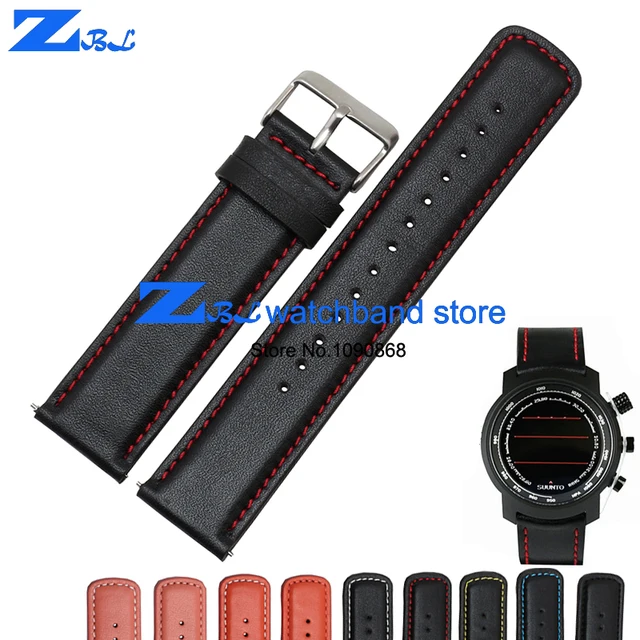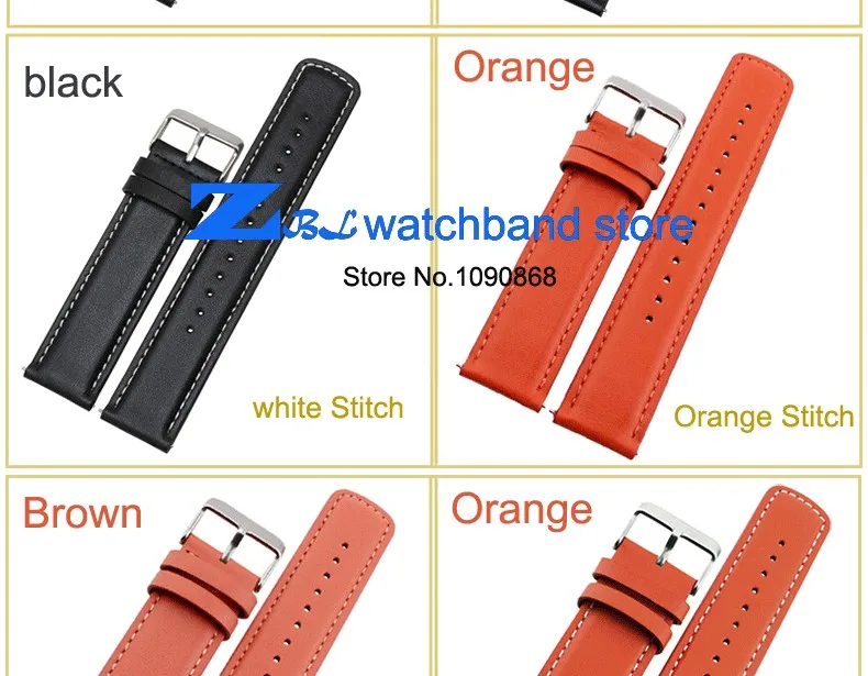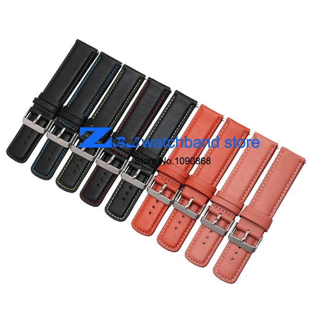| [해외]정품 가죽 손목 22 미리메터 두꺼운 시계 밴드 블랙 orange 스티치 남성 손목 시계 스트랩 레저 등산 야외 |