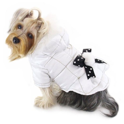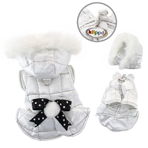 -. Binding : Misc. -. Brand : Klippo -. Color : WHITE -. EAN : 0022099856481 -. Feature : Adorable white parka with sewn grids, with snap button detachable hood. / Accented with furry trims around the hood, a polka dots bow with a white pom-pom. / An attached large D-ring on the back for easy leash attachment. / A small D-Ring attached above the first snap button to add on a "Klippo" charm or ID tag! / Fits dogs with 14" ~ 16" in length (from the base of neck to the base of tail). -. Label : KLIPPO -. Manufacturer : KLIPPO -. MPN : KJK056XL -. PackageQuantity : 1 -. PartNumber : KJK056XL -. ProductGroup : Pet Products -. ProductTypeName : PET_SUPPLIES -. Publisher : KLIPPO -. Size : X-LARGE -. Studio : KLIPPO -. Title : Snow Princess Parka with Detachable Hood - X-LARGE -. UPC : 022099856481
