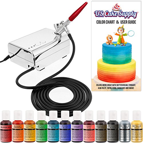 U.S. Cake Supply - Complete Cake Decorating Airbrush Kit with a Full Selection of 12 Vivid Airbrush Food Colors - Decorate Cakes, Cupcakes, Cookies & Desserts