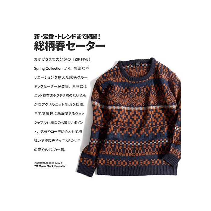 원본상품명: [ジップファイブ] ZIP FIVE 7G柄クルネックセタ 72108090 7RED XL