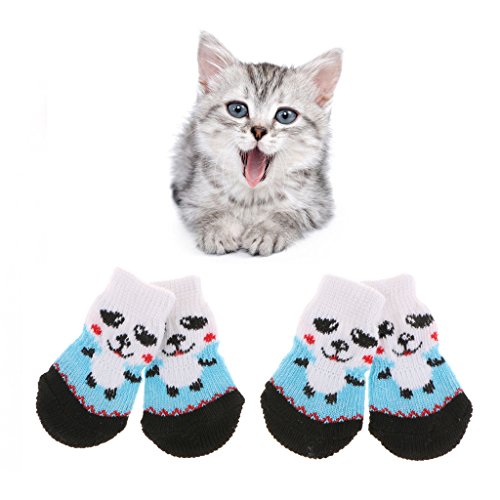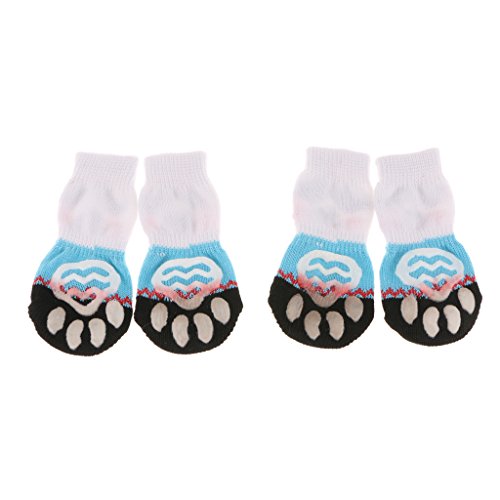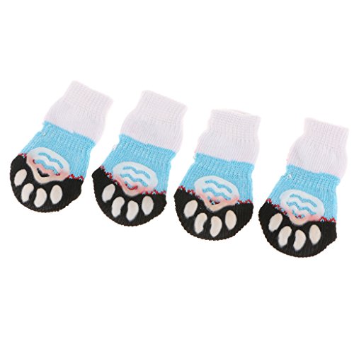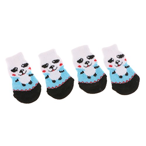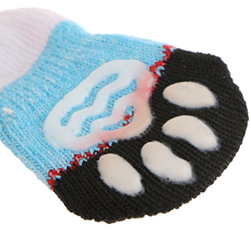 -. Feature : 4-Pack dog socks, heavy cotton made, keep your puppy dog warm and soft underfoot; / ANTI SKID for snowy days, with non-slip backing cover; / PROTECTOR SOCKS, it can keep your feet warm, especially when pet hurt, it can cover their wound and bandaged paws and helps it feel better; / Prevent your pet from scratching the wood floor and furnitures, and keep the paws always clean when it is playing round; / Elastic openning, easy to try on/off;